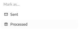 Within the document, the drop-down menu at the top will give us the options to mark our documents as SENT and PROCESSED.