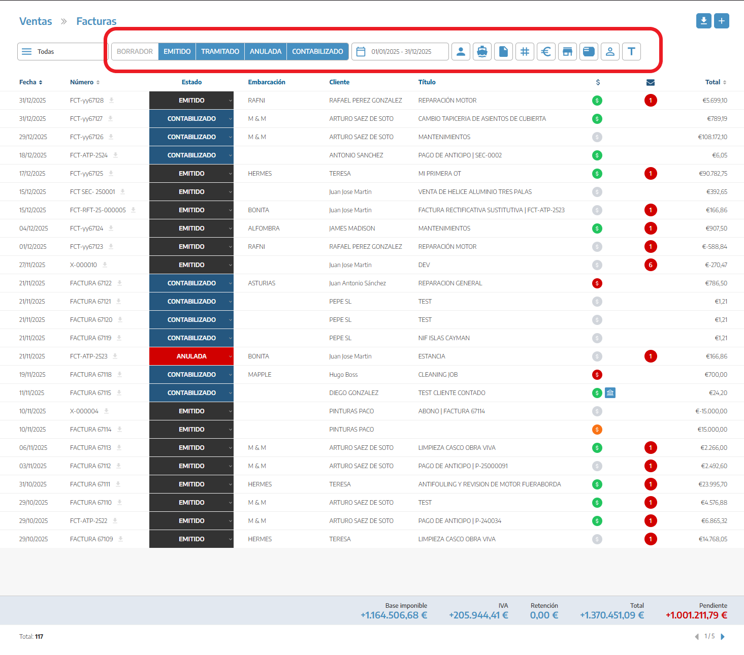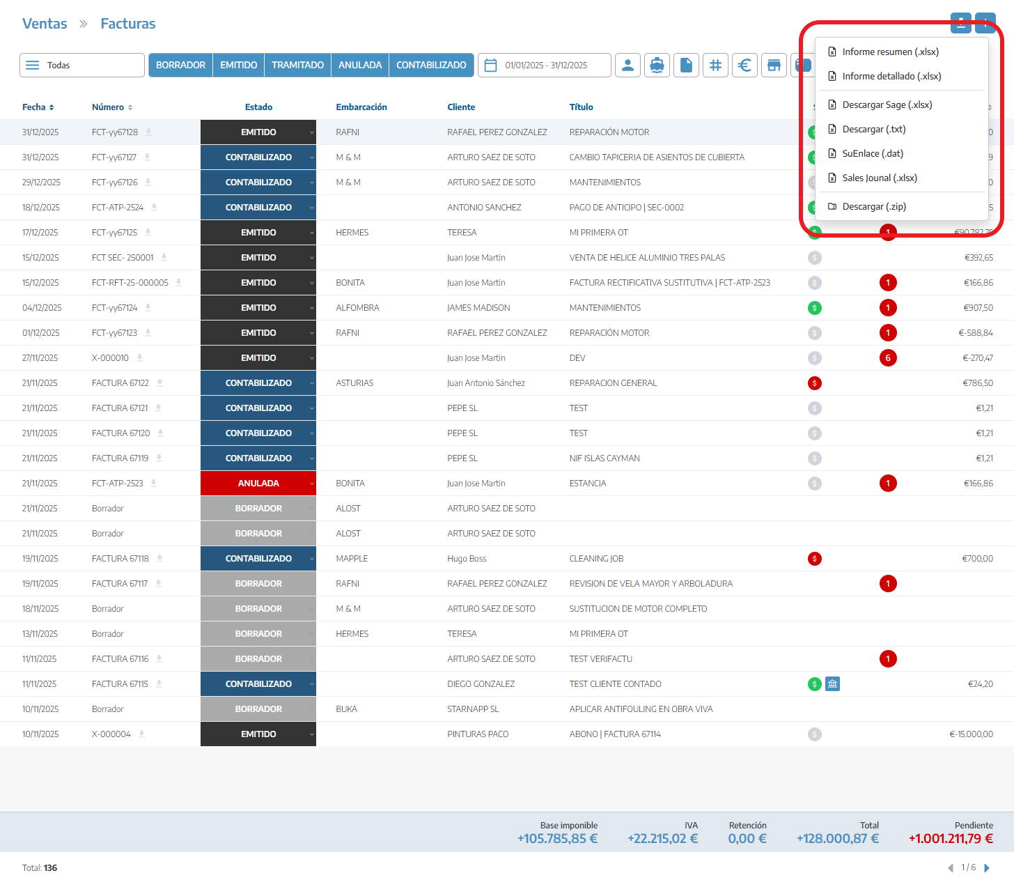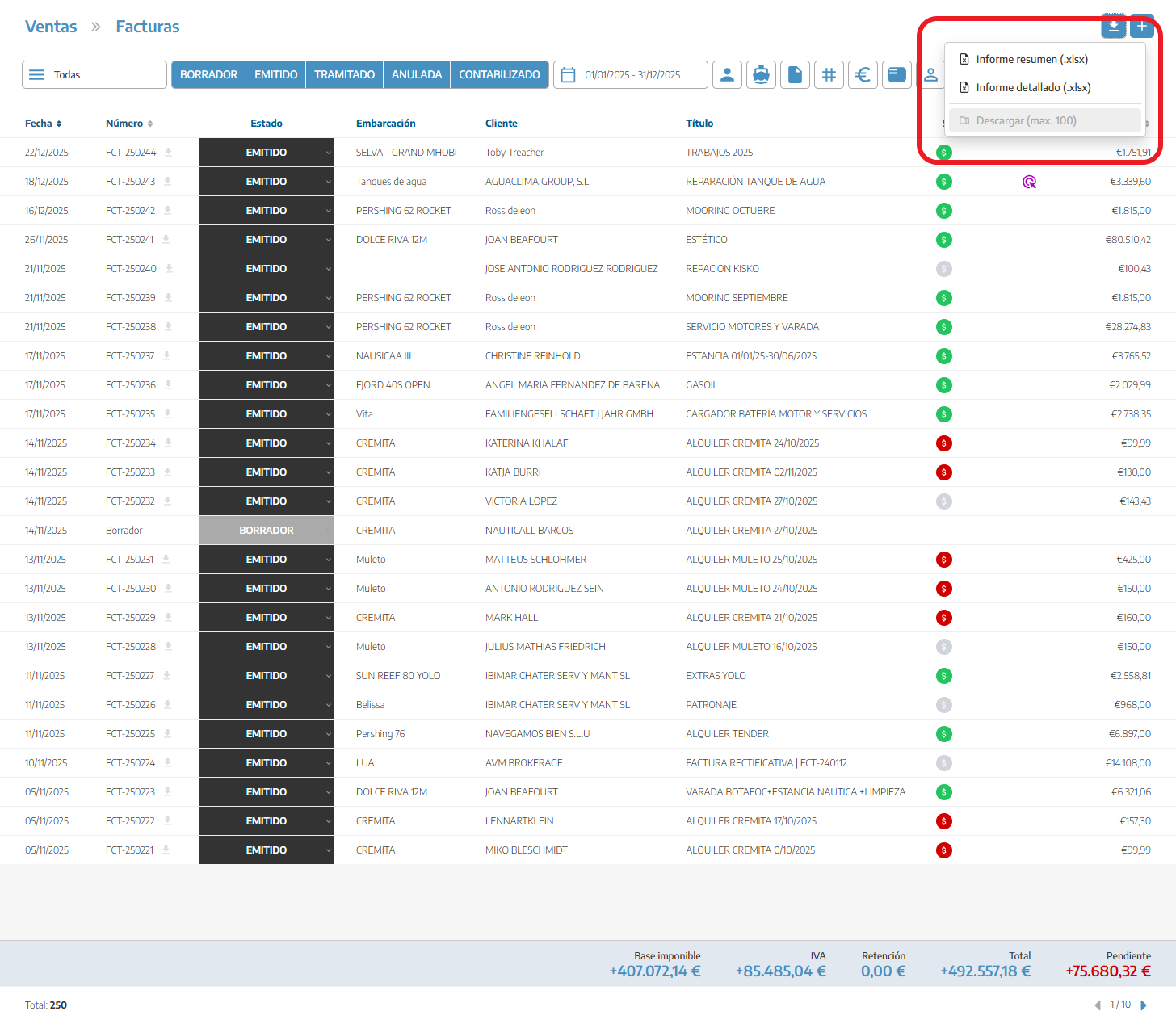 To download these files we go to the list we need. In this case we’ll do it with our sales invoices.