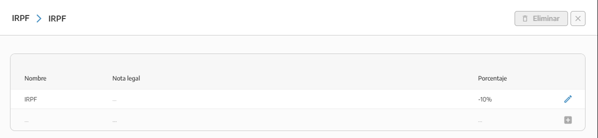 We can add taxes like withholding tax (IRPF), which must be created with a negative percentage.